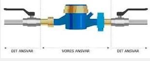 Det er vigtigt, at vandmålere er opsat korrekt, så der kan udføres reparationer og aflæsninger. Vær opmærksom på at opsætning af skabe og andre møbler omkring vandmåleren ikke er hensigtsmæssigt, da det kan hindre adgangen til vandmåleren.